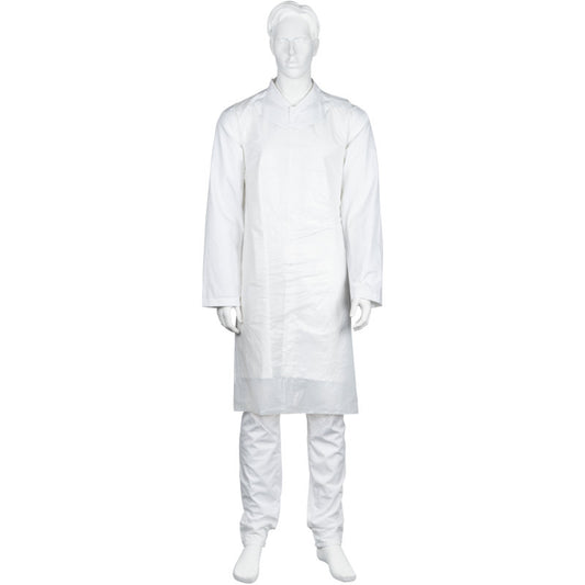 Suitable for your application area, you can buy affordable protective gowns from us. We offer protective gowns made from polypropylene non-woven fabric (PP). This PP gown is latex-free, breathable, and closes with elastic cuffs on the sleeves. The non-woven fabric gown is not moisture-resistant because it is breathable. However, the elastic cuffs on the sleeves largely prevent the entry of liquid on the forearm. If you rely on a moisture-resistant protective gown, we recommend SMS gowns. The protective gown is three-layered and protects against liquids, blood, and viruses with its PE-coated front. Furthermore, the disposable protective gown is tear-resistant and equipped with ties at the neck and waist. We offer both variants of protective gowns in the colors blue and yellow. Additionally, you will find PE disposable aprons and full-body protective suits alongside the protective gowns.