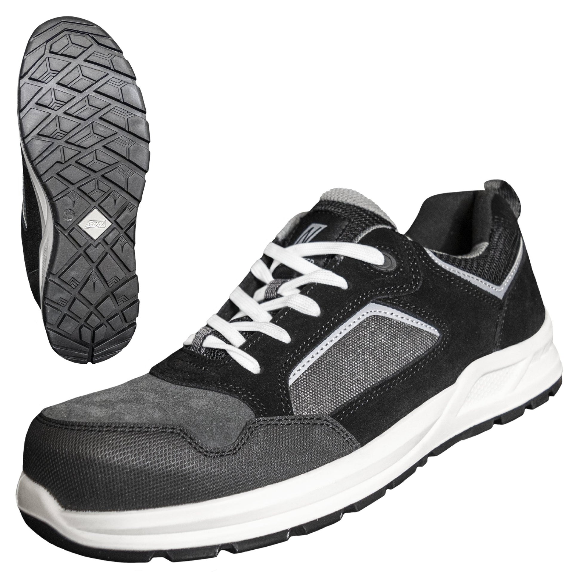 NITRAS CLASSIC STEP, safety low shoes, S1 P, durable suede, durable PU / PU outsole, gray / black (color code: 1210), toe cap made of fiberglass, puncture-resistant midsole made of textile, metal-free, high-quality COMFORT STEP insole, ergonomically shaped, sporty design, best possible slip resistance (SRC), reflective elements, width 11,
